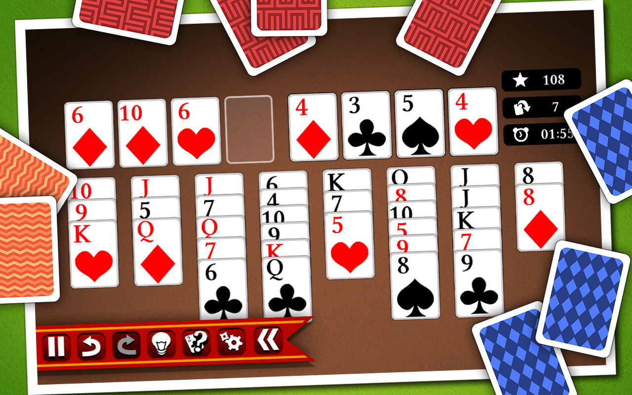 Switch between columns and help yourself with 4 empty stacks to discards all the cards, going from Ace to King. In this new version, create your own gaming experience thanks to a lot of custom options.