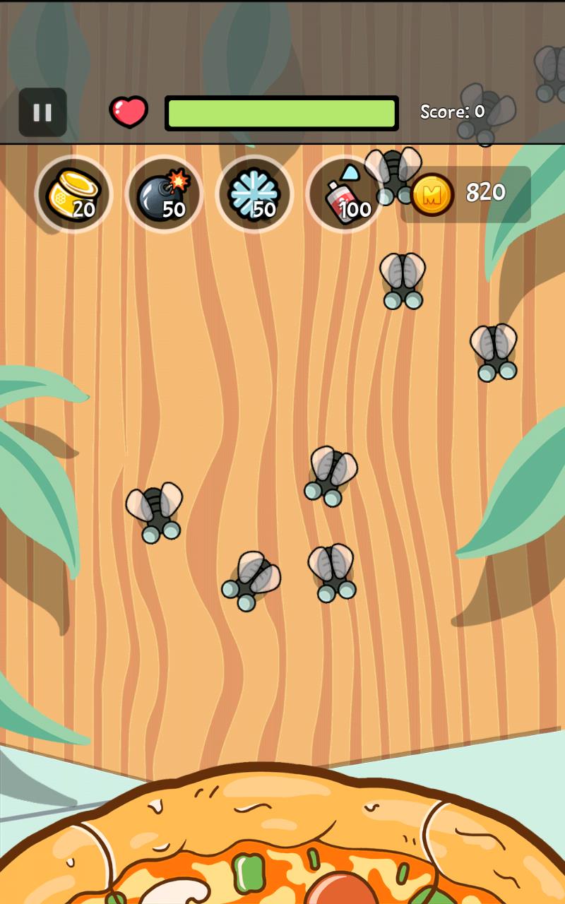 ◆ Pizza Defense: You will have to defend your delicious pizza against hordes of insects! Who will be the one with the last slice of pizza, you or the insects?