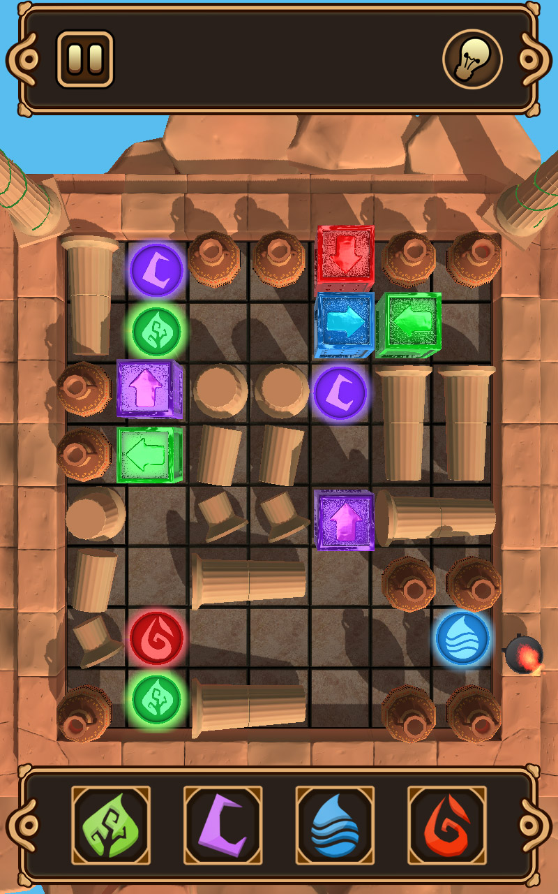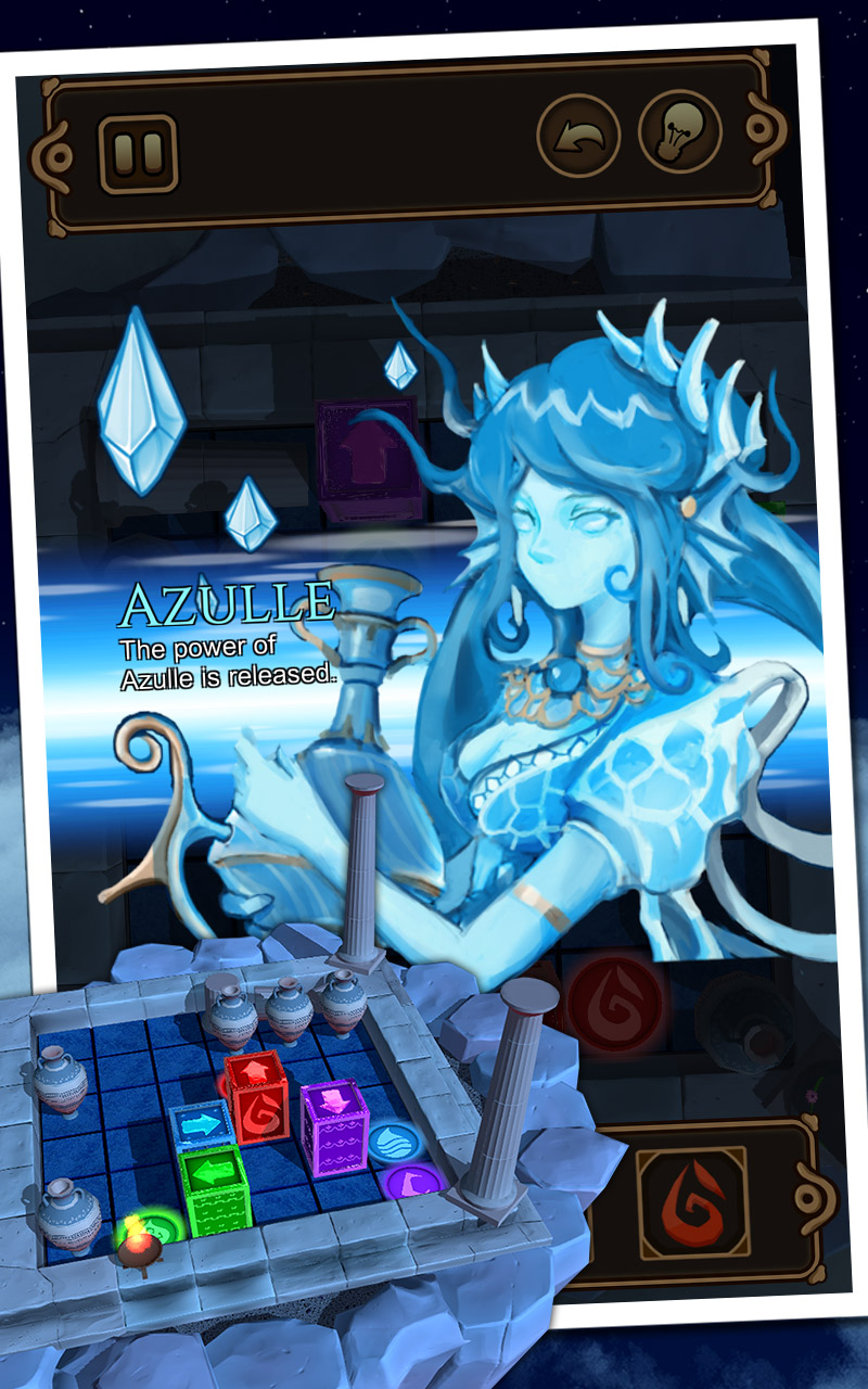 Now it's up to you to restore balance! Your duty is to move one mystical stone after the other to its destination. If you do, the spell on the goddesses will gradually dissipate.